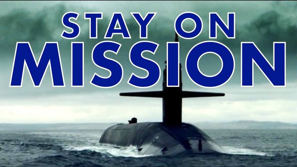 Next Sunday, July 12, we plan to begin a new series called “Stay On Mission”. I recently had a dream in which I was in a submarine. Though it looked fairly normal on the outside, the inside was huge and grand like a luxury cruise ship. There were many other details in the dream, but one key feature was the sailors, quickly and intently moving about their business. They were all dressed in the same uniform that glowed in a shimmering, ghostly blue. Someone who was with me asked how they could tell the difference between men and women since they all looked the same in their uniforms. I answered, “On mission, duty is above diversity. If you’re part of their culture, you know and celebrate the differences. But their shared sense of purpose prioritizes the mission and unifies them.” When I woke up, three words resonated and repeated in my head: “Stay on mission!”