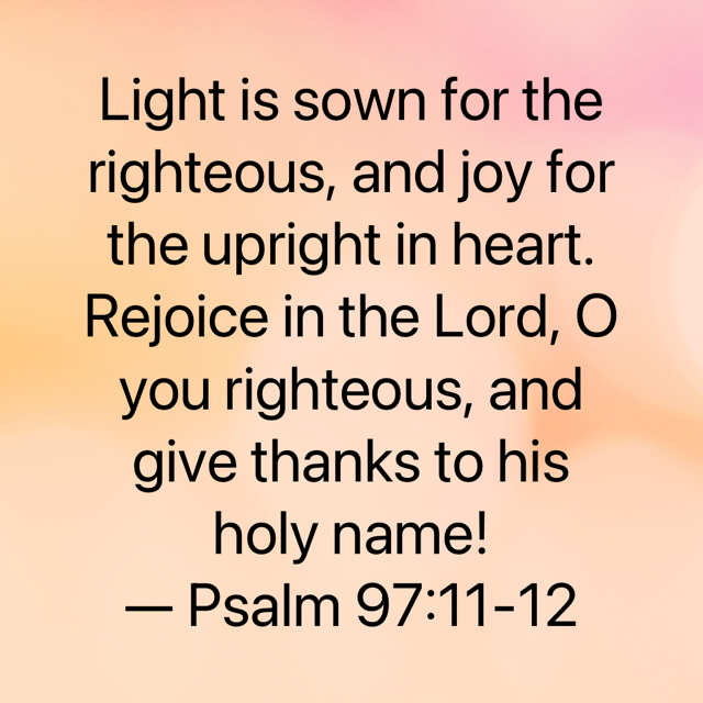 What are two seeds God has sown in you? Light and joy. We must partner with God in removing the weeds of darkness to make room for a forest of light. We must uproot and discard fear, anxiousness, and unthankfulness in order to cultivate joy. Rejoice in the Lord and give thanks! Determine today to focus on feeding the light within you and thankfully rejoicing in the Lord. Remain intentional in growing the glory of God that is in you.