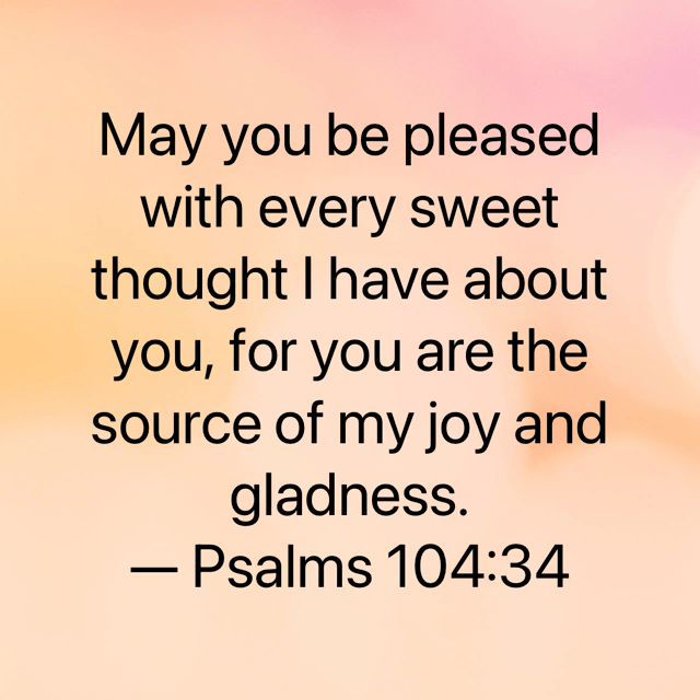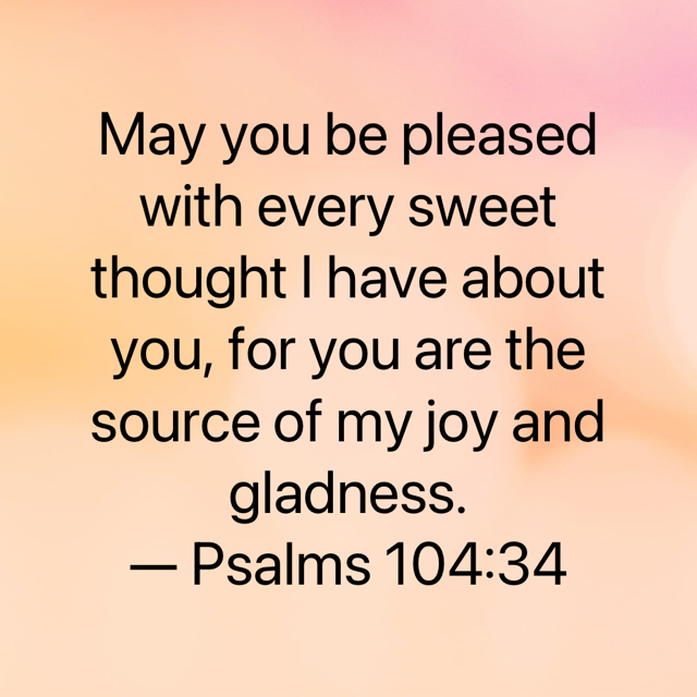 My thoughts of Him —> His Pleasure to me —> joy and gladness in my life —> my thoughts of Him —> His Pleasure to me —> joy and gladness in my life —> my thoughts of Him… On and on and wonderful on.