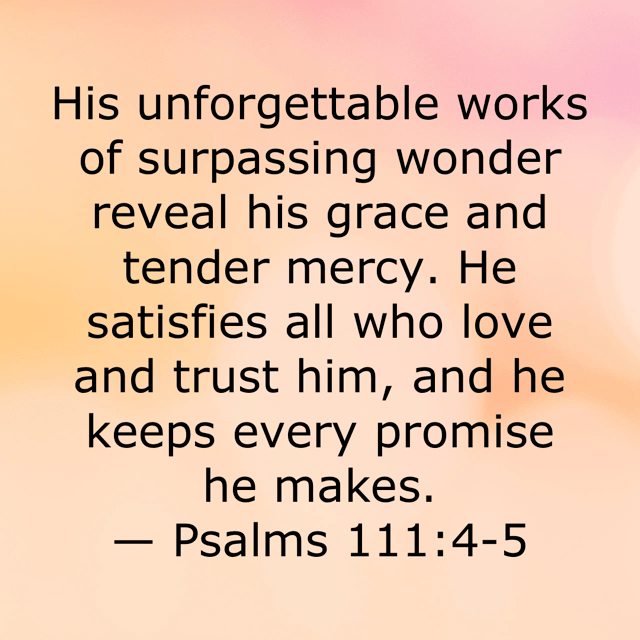 Father God’s children are identified by their love and trust in Him, and our good Father is set on satisfying us completely. He speaks to us, His children, with every intention of accomplishing what He speaks. He fulfills every promise, without fail. Let’s prepare our hearts for wonder as we look for His grace and mercy all around us today. Let’s honor and adore Him and establish our trust in His immeasurable loving kindness towards us. And let’s remain steadfast in His faithfulness, remembering that He keeps every promise He makes.