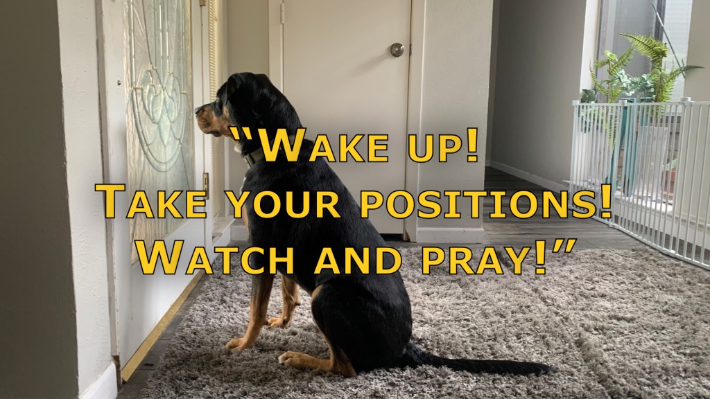 God is saying, “Wake up! Take your positions! Watch and pray!” Remember when Jesus asked His disciples to pray with Him that they would resist temptation, but what did they keep doing? Falling asleep. They didn’t take their responsibility seriously, and they could not stay in alert prayer.