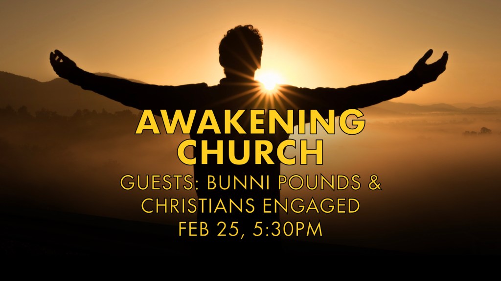 5:30pm this Saturday 5:30pm, we’ll be hosting Bunni Pounds, President of Christians Engaged. Bunni has a passion for restoring the Kingdom influence to local and national government, and she’ll be sharing an inspiring message on “Awakening Church”. Bunni will also lead a panel discussion with Christians Engaged Board Members Samuel Bistrian, Pastor Marty Reid, Eugene Ralph Sr. and his son Eugene Ralph Jr. about their involvement with Christians Engaged and other areas of local civic engagement. This will be an enlightening and inspiring conversation, especially for young people! Come and bring your family & friends!