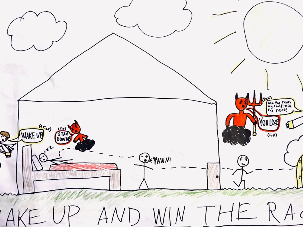 another voice within me says, “Get up and win that race!”