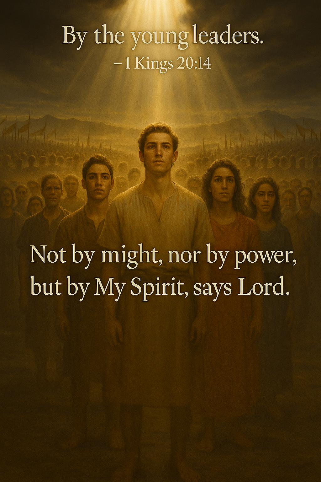 And Ahab said, “By whom?” He said, “Thus says the LORD, By the servants of the governors of the districts.” Then he said, “Who shall begin the battle?” He answered, “You.”