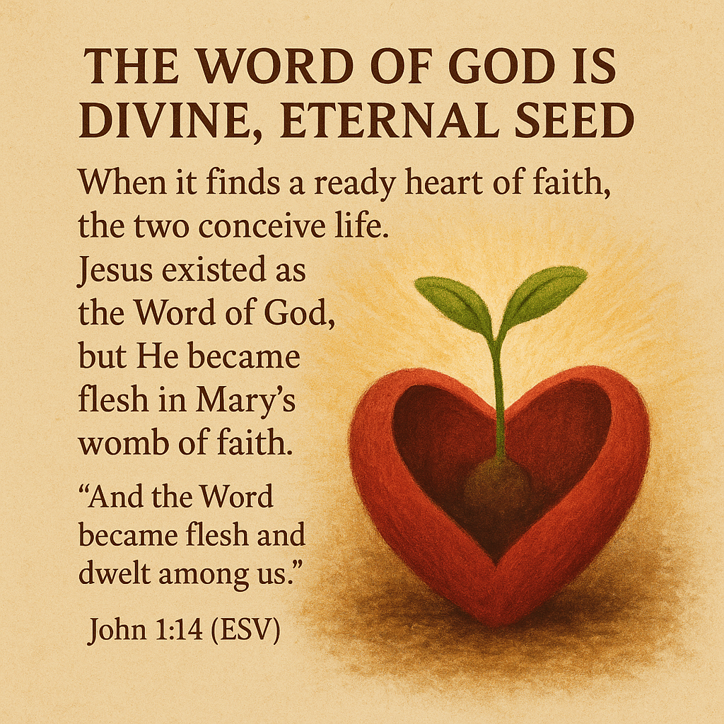 The word of God is divine, eternal seed. When it finds a ready heart of faith, the two conceive life. Jesus existed as the Word of God, but He became flesh in Mary’s womb of faith. John 1:14 (ESV) says, “And the Word became flesh and dwelt among us.” God is always looking for a ready heart to be a womb of faith for His word.